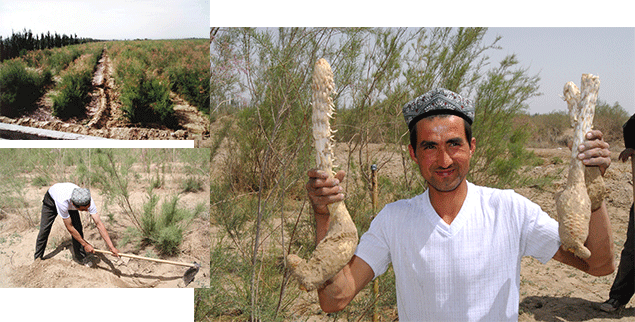 この砂漠人参カンカはタクラマカン砂漠特有の植物で、過酷な自然条件の中でも育つ極めて強靭な植物です。